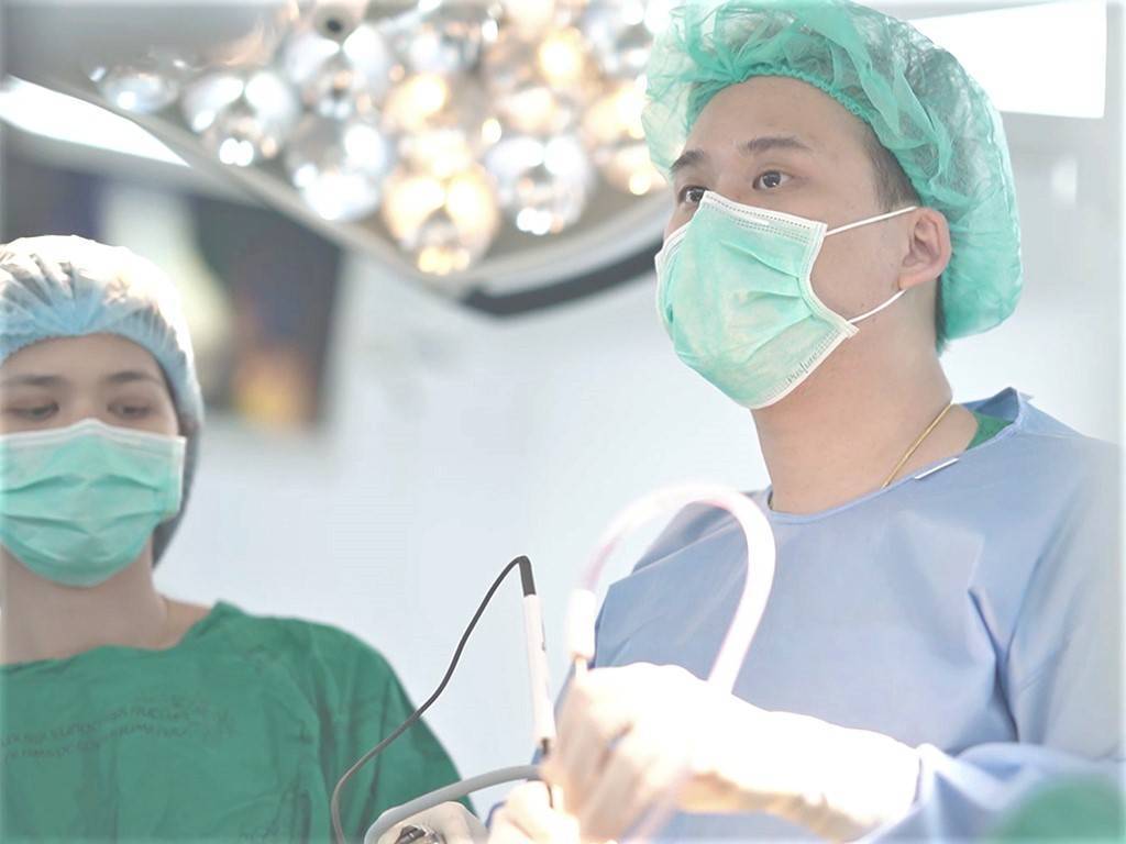 2. ผ่าตัดส่องกล้องแก้น้ำจากมะเร็งแบบจุดเดียว (Uniportal VATS Surgery) โดยเจาะรูบริเวณข้างลำตัวผ่านช่องซี่โครงเพื่อใส่เครื่องมือเข้าไปทำการผ่าตัด โดยจะล้างเอาน้ำออก และ ใส่สารเคลือบปอด ( Talc pleurodesis) เพื่อป้องกันไม่ให้น้ำกลับมาเป็นซ้ำ ซึ่งแผลจะมีขนาดเล็กประมาณ 3 เซนติเมตร เจ็บน้อย พักฟื้นไม่นาน (อย่างไรก็ตามเนื่องจากมะเร็งระยะ 4 การรักษาหลัก ๆ ส่วนใหญ่ บทบาทยังคงเป็นการรักษาด้วยยาเคมีบำบัดและยาภูมิคุ้มกันบำบัด เพื่อป้องกันไม่ให้มะเร็งลุกลามกว่าเดิม)
