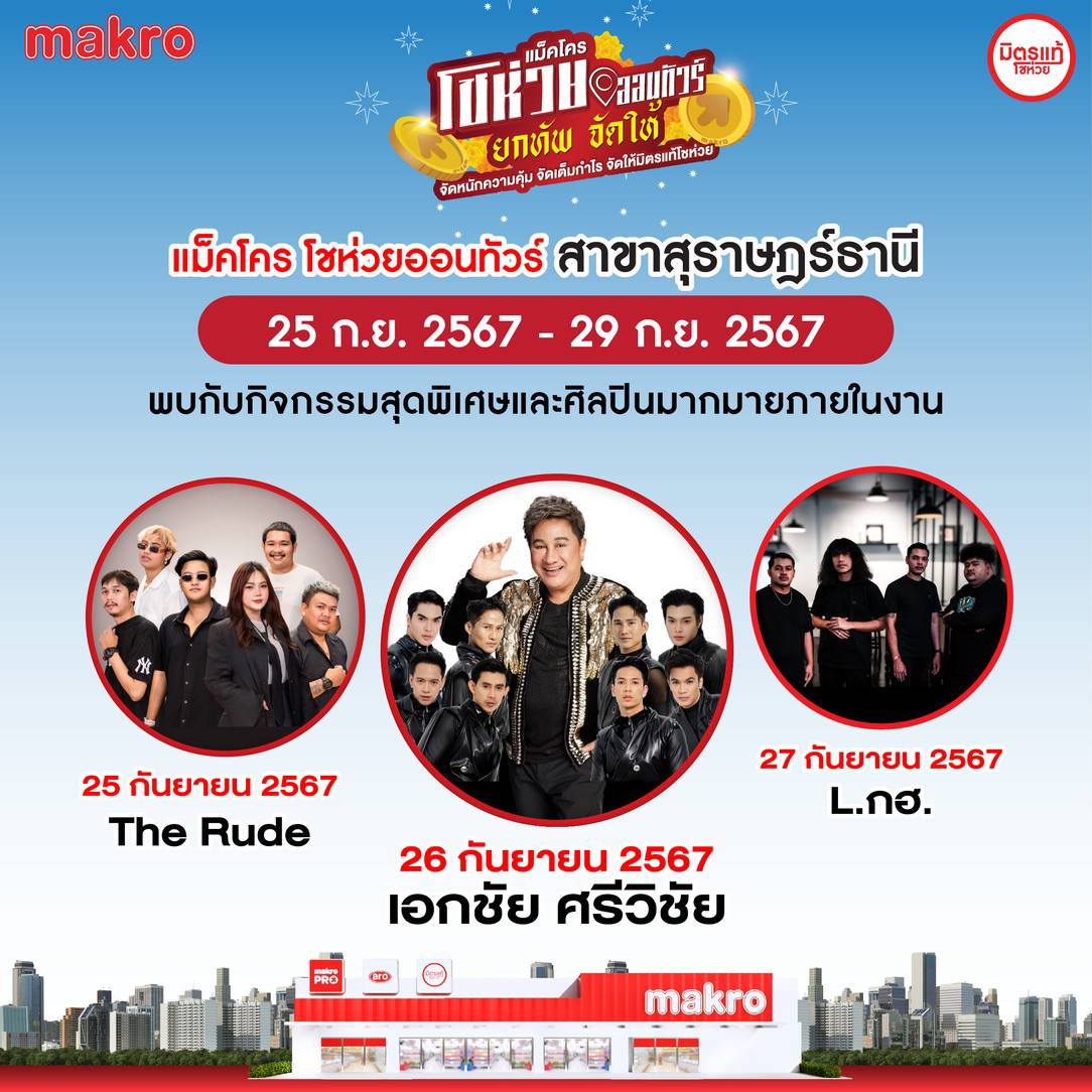 ชาวสุราษฎร์เตรียมหรอยหนัด! กับ คอนเสิร์ต "เอกชัย ศรีวิชัย" แบบเต็มวง ในงาน "แม็คโคร โชห่วยออนทัวร์ 2024" วันที่ 25 -29 ก.ย.นี้ ที่ แม็คโคร สุราษฎร์ธานี