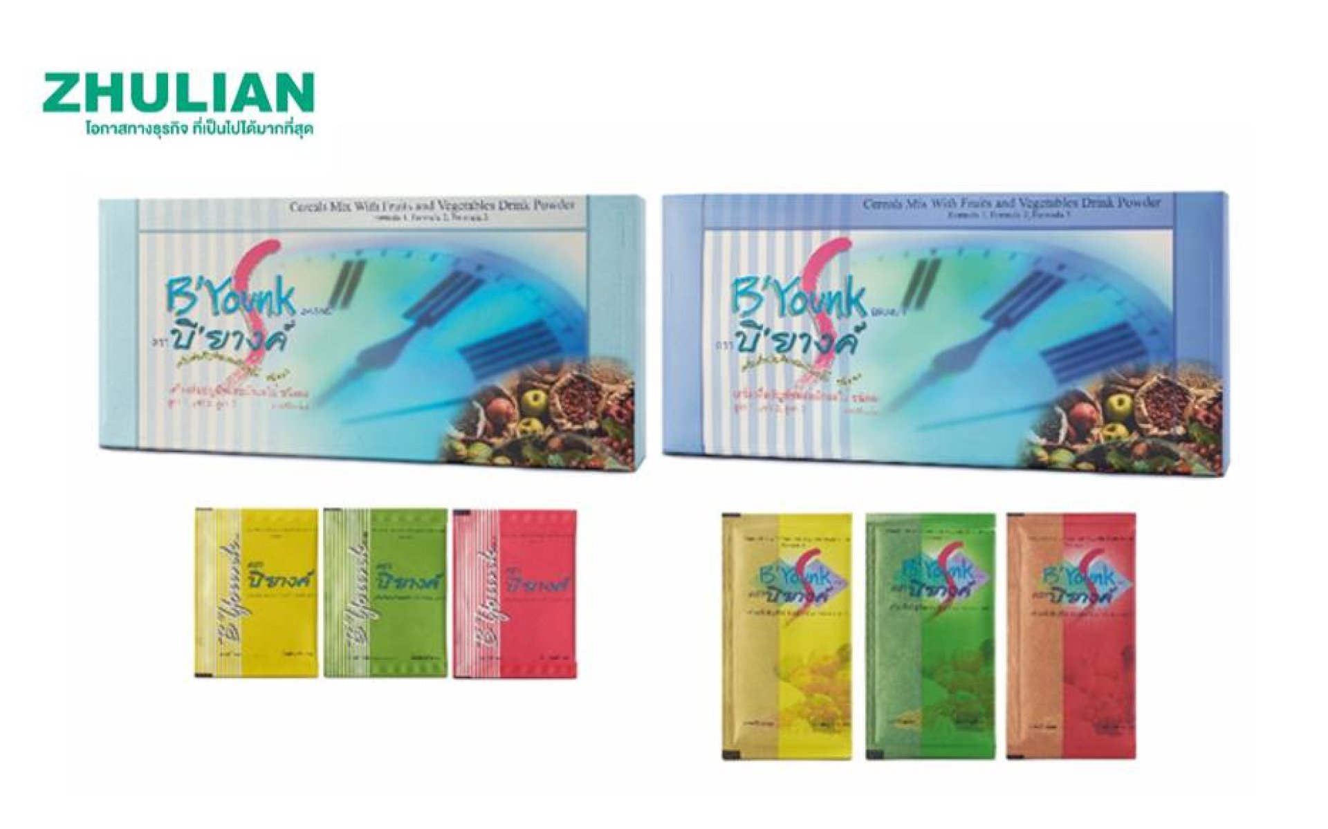 บียางค์ เครื่องดื่มธัญพืชผสมผักผลไม้ ชนิดผง 2 ขนาด บรรจุซองแยกชิ้นเพื่อความสะดวกดื่มได้ทุกที่ทุกเวลา ขนาด 90ซอง x 16กรัม และ 180ซอง x 8กรัม ราคาเดียวกัน 9,220 บาท ติดต่อ บริษัท ซูเลียน (ประเทศไทย) จำกัด Line: @zhulianthailand , Fanpage Facebook : zhulianmarketing และเอเจนซี่ใกล้บ้าน