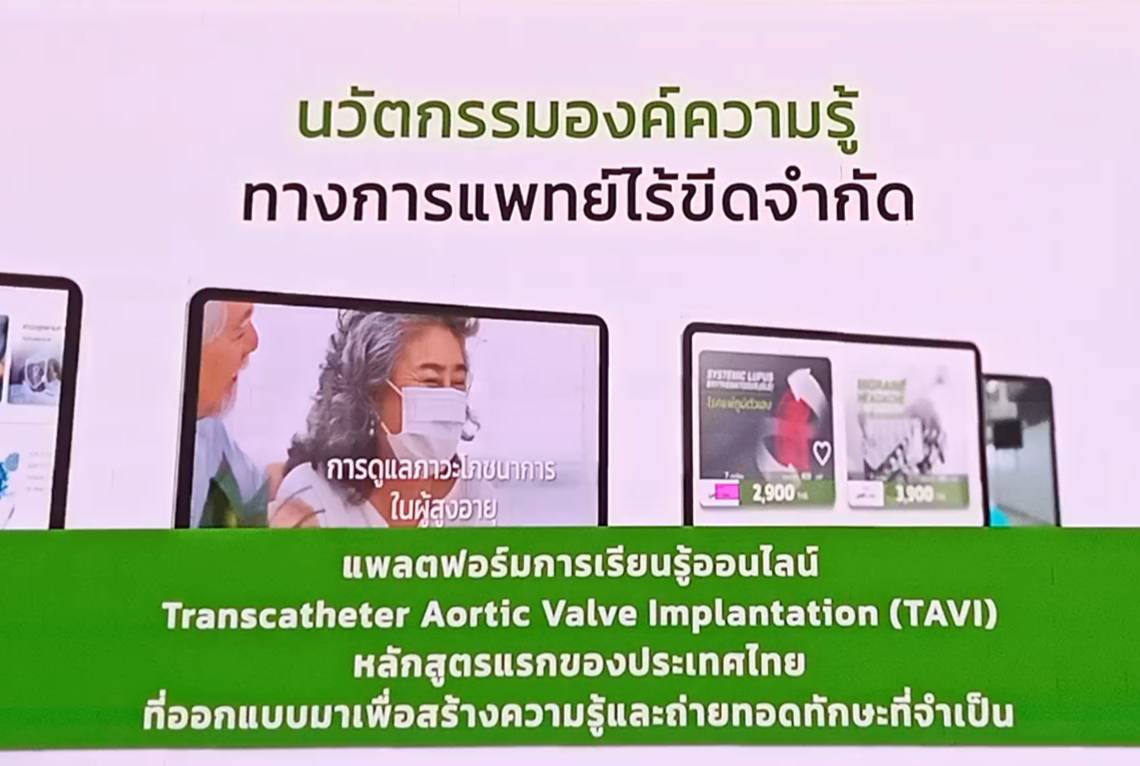 ศูนย์โรคหัวใจ โรงพยาบาลจุฬาลงกรณ์ สภากาชาดไทย, สาขาวิชาอายุรศาสตร์หัวใจและหลอดเลือด คณะแพทยศาสตร์ จุฬาลงกรณ์มหาวิทยาลัย, MDCU MedUMore คณะแพทยศาสตร์ จุฬาลงกรณ์มหาวิทยาลัย และ บริษัท เมดโทรนิค (ประเทศไทย) จำกัด ร่วมกันสนับสนุนการเป็นสถาบันต้นแบบทางการแพทย์และถ่ายทอดองค์ความรู้ทั้งในและต่างประเทศนำเสนอนวัตกรรมการเรียนรู้ออนไลน์ MedUMore หลักสูตรนวัตกรรมการรักษา TAVI (Transcatheter Aortic Valve Implantation) หรือการเปลี่ยนลิ้นหัวใจเอออร์ติกผ่านสายสวนโดยไม่ต้องผ่าตัด หลักสูตรแรกของประเทศไทย