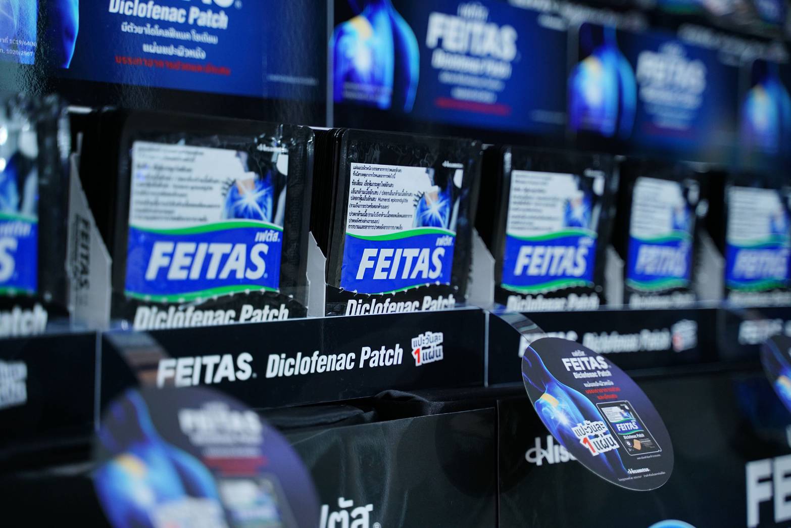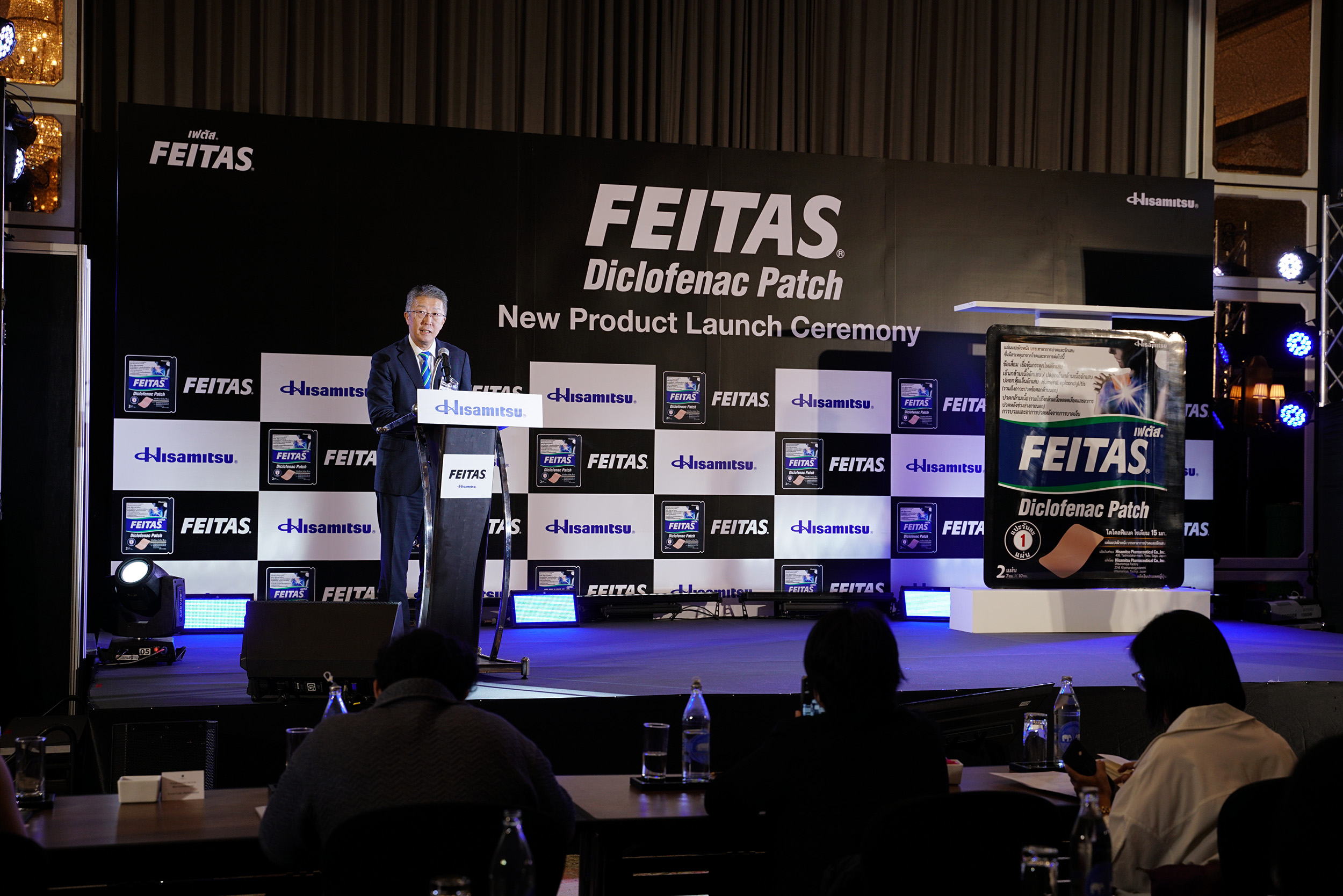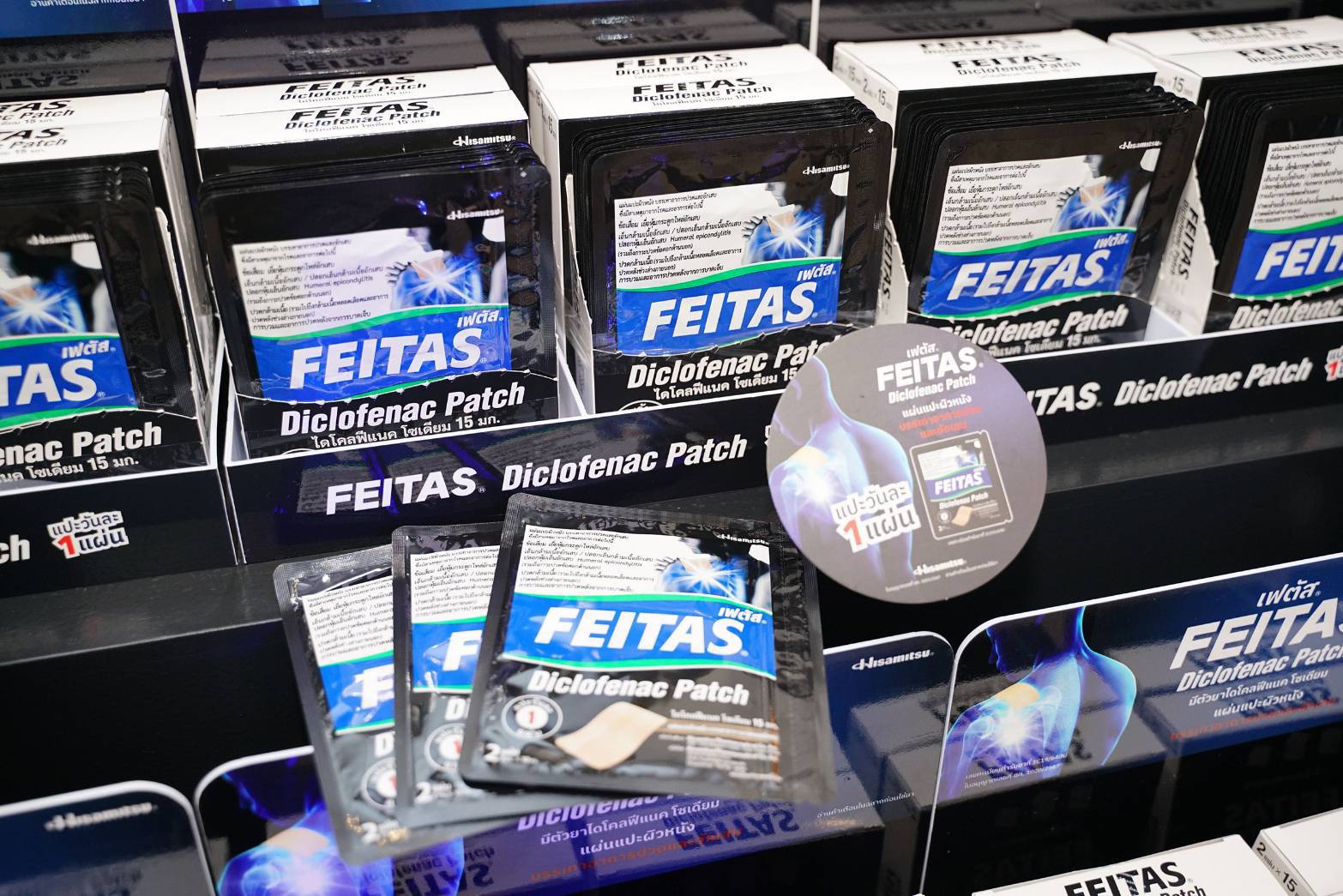 "ฮิซามิทสึ ฟาร์มาซูติคอล" ประเทศญี่ปุ่น บริษัทผู้ผลิตยาแก้ปวดภายนอก ในกลุ่มพลาสเตอร์บรรเทาปวดที่ไม่ต้องใช้ใบสั่งยาอันดับหนึ่งของโลก จัดงานแถลงข่าวเปิดตัวผลิตภัณฑ์ "เฟตัส ไดโคลฟีแนค (FEITAS Diclofenac Patch)" ครั้งแรกในประเทศไทยกับแผ่นแปะที่มีส่วนผสมของ "ไดโคลฟีแนค" สารสำคัญในกลุ่มยาแก้ปวด ซึ่งใช้ต้านการอักเสบกันอย่างแพร่หลายทั่วโลก นำมาสู่ความท้าทายครั้งใหม่ในการพัฒนาให้สามารถซึมผ่านผิวหนังเพื่อลดผลข้างเคียงที่น้อยลง โดยแผ่นแปะบรรเทาปวด "เฟตัส ไดโคลฟีแนค" นี้ มีประสิทธิภาพในการออกฤทธิ์สูงถึง 24 ชั่วโมง เหมาะสำหรับผู้ที่มีอาการกล้ามเนื้อปวดและอักเสบเรื้อรังชนิดรุนแรง และผู้ที่มีความเสี่ยงสูงต่อการแพ้ยาจากการใช้ยารับประทาน