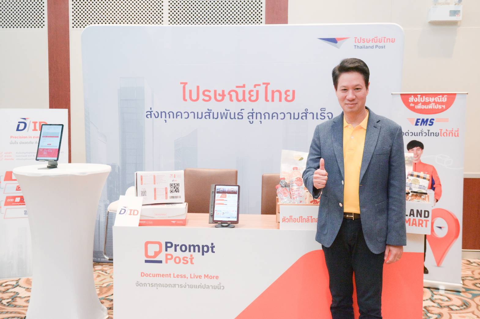 ตลอดจนการเชื่อมโอกาสผู้ประกอบการนำสินค้าจำหน่ายบน ThailandPostMart แพลตฟอร์มอีคอมเมิร์ซของไทยที่รวบรวมสินค้าตัวท็อปจากทุกภูมิภาคกว่า 20,000 รายการ จากผู้ประกอบการกว่า 6,000 ราย และไปรษณีย์ไทยยังพร้อมสนับสนุนให้ร้านค้าโชห่วยเป็นจุดรับส่งสินค้า EMS Point เพื่อสร้างรายได้และเพิ่มความสะดวกให้กับการรับฝากสิ่งของ ซึ่งปัจจุบันมีกลุ่มร้านสะดวกซื้อ ธุรกิจร้านอาหาร คาเฟ่ ฯลฯ ที่สนใจเปิดจุดให้บริการเพิ่มรวมแล้วกว่า 10,789 แห่ง"