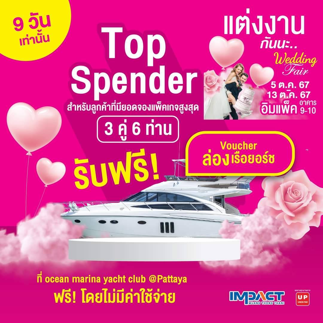3. งาน Wedding Fair วิวาห์ นี้มีแต่ประทับใจ รวบรวมผู้ให้บริการมืออาชีพ, ถ่ายภาพพรีเวดดิ้ง, กองทัพชุดวิวาห์ บ่าว-สาว มาให้เลือกชมพร้อมแพ็คเกจแต่งงานลดสูงสุด 50% สำหรับทุกคู่รัก จากสตูดิโอชั้นนำ อาทิ โคโค ชิค สตูดิโอ, คลาสสิค สตูดิโอ, อมตะ สตูดิโอ, โมนิค สตูดิโอ, เฌอติน ไบดอล, และ อิมเมจิ้น สตูดิโอ มาไว้รวมกันในที่เดียวและ ยังเรียกได้ว่าเป็น One Stop Service งานเดียวที่มาครบทุกฟังก์ชั่นการจัดงานแต่งงาน และโปรโมชั่นพิเศษสำหรับผู้จัดงาน Top Spender สำหรับลูกค้าที่มียอดจองแพ็กเกจสูงสุด 3 อันดับแรกภายในงาน 3 คู่ 6 ท่าน รับ Voucher ล่องเรือยอร์ช ฟรี ที่พัทยา