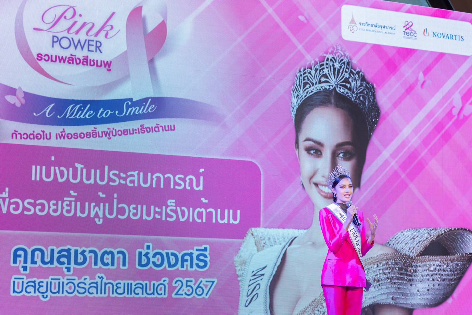 "มะเร็งเต้านม" เป็นมะเร็งที่พบมากเป็นอันดับ 1 ของสตรีไทยและสตรีทั่วโลก โดยมีแนวโน้มเพิ่มขึ้นอย่างต่อเนื่อง ทั้งนี้ องค์การอนามัยโลก กำหนดให้เดือนตุลาคมของทุกปี เป็น "เดือนแห่งการรณรงค์ต้านภัยมะเร็งเต้านมสากล" เพื่อสร้างความตระหนักรู้ถึงความสำคัญต่อสุขภาพเต้านมของตนเอง และด้วยเทคโนโลยีการแพทย์ในปัจจุบัน โรคมะเร็งเต้านมสามารถตรวจพบได้ตั้งแต่ระยะเริ่มแรกซึ่งจะช่วยทำให้ผู้ป่วยได้เข้าถึงการรักษารวดเร็วและได้ผลดี เพิ่มอัตราการรอดชีวิตของผู้ป่วยได้สูงขึ้น และเพิ่มคุณภาพชีวิตของผู้ป่วย โดยโรงพยาบาลจุฬาภรณ์ ราชวิทยาลัยจุฬาภรณ์ ได้เล็งเห็นถึงความสำคัญ จึงได้ผนึกความร่วมมือกับภาคีเครือข่ายจัดกิจกรรม "Pink Power, A Mile to Smile ก้าวต่อไปเพื่อรอยยิ้มของผู้ป่วยมะเร็งเต้านม" โดยเปิดเวทีเสวนาให้ความรู้ในเรื่อง นวัตกรรมการตรวจวินิจฉัยและรักษาผู้ป่วยมะเร็งมะเร็งเต้านม ของโรงพยาบาลจุฬาภรณ์ ซึ่งมุ่งเน้นการให้บริการทางการแพทย์ด้านโรคมะเร็งที่เป็นเลิศแก่ประชาชน โดยเฉพาะผู้ป่วยที่ขาดแคลนเพื่อให้สามารถเข้าถึงเทคโนโลยีการตรวจรักษาโรคมะเร็งที่มีคุณภาพและได้มาตรฐานอย่างเท่าเทียม สนองการดำเนินงานตามพระปณิธานใน ศาสตราจารย์ ดร. สมเด็จเจ้าฟ้า ฯ กรมพระศรีสวางควัฒน วรขัตติยราชนารี องค์ประธานและนายกสภาราชวิทยาลัยจุฬาภรณ์ ผู้ทรงก่อตั้งโรงพยาบาลจุฬาภรณ์แห่งนี้ เพื่อช่วยเหลือและบรรเทาความทุกข์ทรมานของผู้ป่วยมะเร็งและญาติ ควบคู่ไปกับการพัฒนาบุคลากรทางการแพทย์ การค้นคว้าวิจัยทางด้านวิชาการ ตลอดจนยกระดับและพัฒนาด้านการตรวจวินิจฉัยและรักษาโรคมะเร็งด้วยเทคโนโลยีทางการแพทย์ขั้นสูงในประเทศไทยให้ได้มาตรฐานทัดเทียมนานาประเทศ