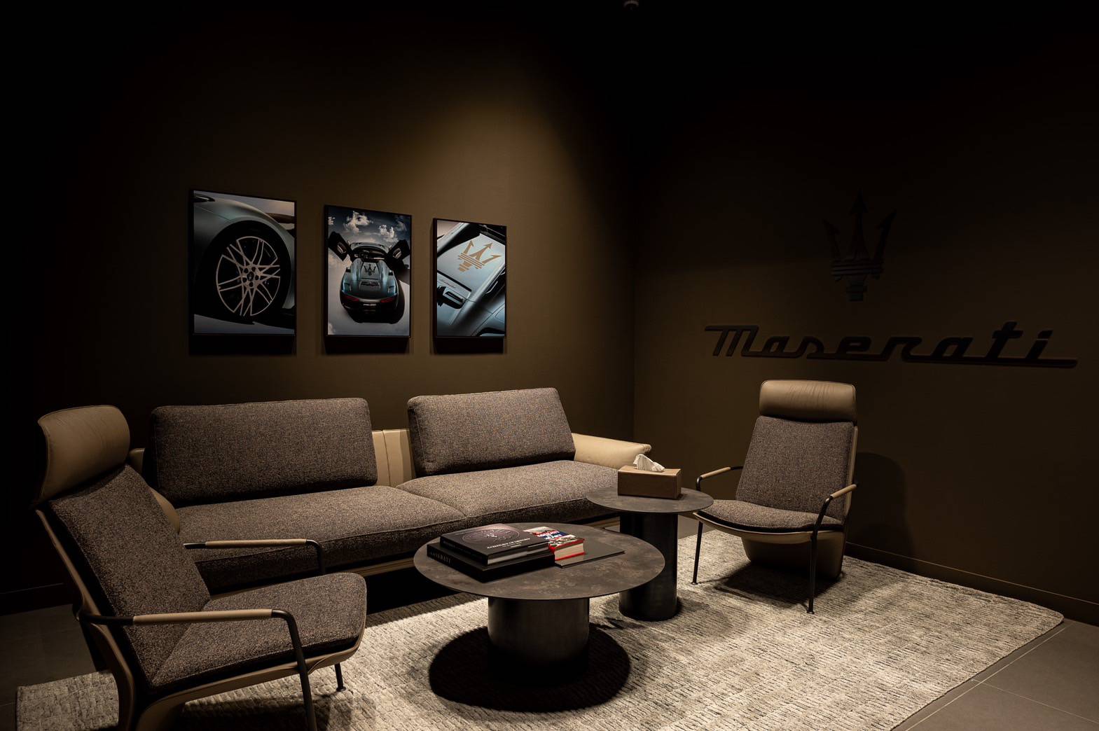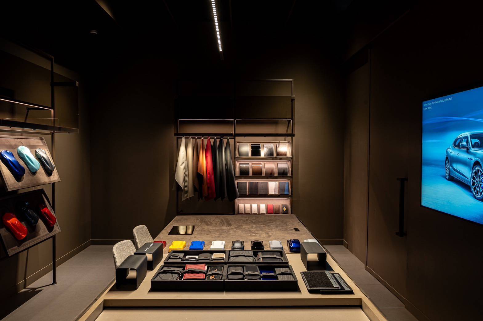 โชว์รูมล้อมรอบด้วยกระจกใส มองเห็นได้จาก 3 ด้าน พร้อมมียนตรกรรมไฮไลท์อยู่กลางห้อง เสมือนเป็นอาร์ตแกลเลอรีที่จัดแสดงงานศิลป์ชั้นเลิศ แต่งด้วยโทนสีเทา ให้ความรู้สึกเคร่งขรึม และมีประตูที่นำไปสู่ห้องพิเศษตามคอนเซปต์ 'Atelier of Passion' ที่ถ่ายทอดผ่านการผสมผสานระหว่างความเป็นแกลเลอรีศิลปะสมัยใหม่และโชว์รูมรถยนต์ นำเสนอประสบการณ์เสมือนจริง กระตุ้นประสาทสัมผัสทุกด้าน ดำดิ่งสู่โลกแห่งความปรารถนาอันเร่งเร้า ดุจดั่งความเร็วที่พุ่งทะยานของเครื่องยนต์ มาเซราติ ผสานกับแรงบันดาลใจอันไร้ขีดจำกัด เปิดโอกาสให้ลูกค้าสามารถรังสรรค์รายละเอียดการตกแต่งยนตรกรรม มาเซราติ คันโปรดได้ตามจินตนาการแบบ immersive 3D เรียกว่าโปรแกรม 'Fuoriserie' ซึ่งเป็นมาตรฐานเดียวกันกับโชว์รูมในประเทศอิตาลี และนับเป็นโชว์รูม มาเซราติ ที่มาพร้อมอัตลักษณ์ใหม่ เป็นแห่งแรกในเอเชียตะวันออกเฉียงใต้