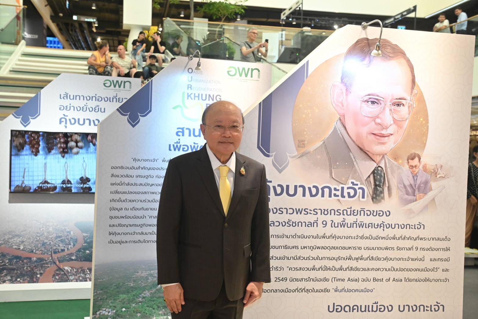 นาวาอากาศเอก อธิคุณ คงมี ผู้อำนวยการองค์การบริหารการพัฒนาพื้นที่พิเศษเพื่อการท่องเที่ยวอย่างยั่งยืน (องค์การมหาชน) หรือ อพท. กล่าวว่า อพท. ในฐานะหน่วยงานต้นน้ำ ทำหน้าที่ในการบริหารการพัฒนาการท่องเที่ยวเพื่อให้เกิดความยั่งยืน ซึ่งได้ดำเนินการประกาศพื้นที่พิเศษเพื่อการท่องเที่ยวอย่างยั่งยืนคุ้งบางกะเจ้า เมื่อปี ๒๕๖๖ ซึ่งพื้นที่คุ้งบางกะเจ้าแห่งนี้ มีเรื่องราวอันทรงคุณค่า คือ พระราชกรณียกิจและพระมหากรุณาธิคุณของพระบาทสมเด็จพระบรมชนกาธิเบศร มหาภูมิพลอดุลยเดชมหาราช บรมนาถบพิตร รัชกาลที่ ๙ ที่มีต่อพื้นที่คุ้งบางกะเจ้า ซึ่งถือเป็นพื้นที่ที่มีธรรมชาติอุดมสมบูรณ์และวัฒนธรรมที่หลากหลาย และกำลังกลายเป็นแหล่งท่องเที่ยวที่สำคัญของไทยในปัจจุบัน การเติบโตของการท่องเที่ยวในพื้นที่นี้ ไม่เพียงแต่ช่วยกระตุ้นเศรษฐกิจท้องถิ่น แต่ยังส่งผลต่อการพัฒนาชุมชนในหลายด้าน โดยยึดมั่นในหลักปรัชญาเศรษฐกิจพอเพียงของในหลวงรัชกาลที่ ๙ ซึ่งเน้นความสมดุลและความยั่งยืน อพท. จึงได้นำเรื่องราวดังกล่าวมาถ่ายทอดเป็นส่วนหนึ่งของนิทรรศการในครั้งนี้ด้วย