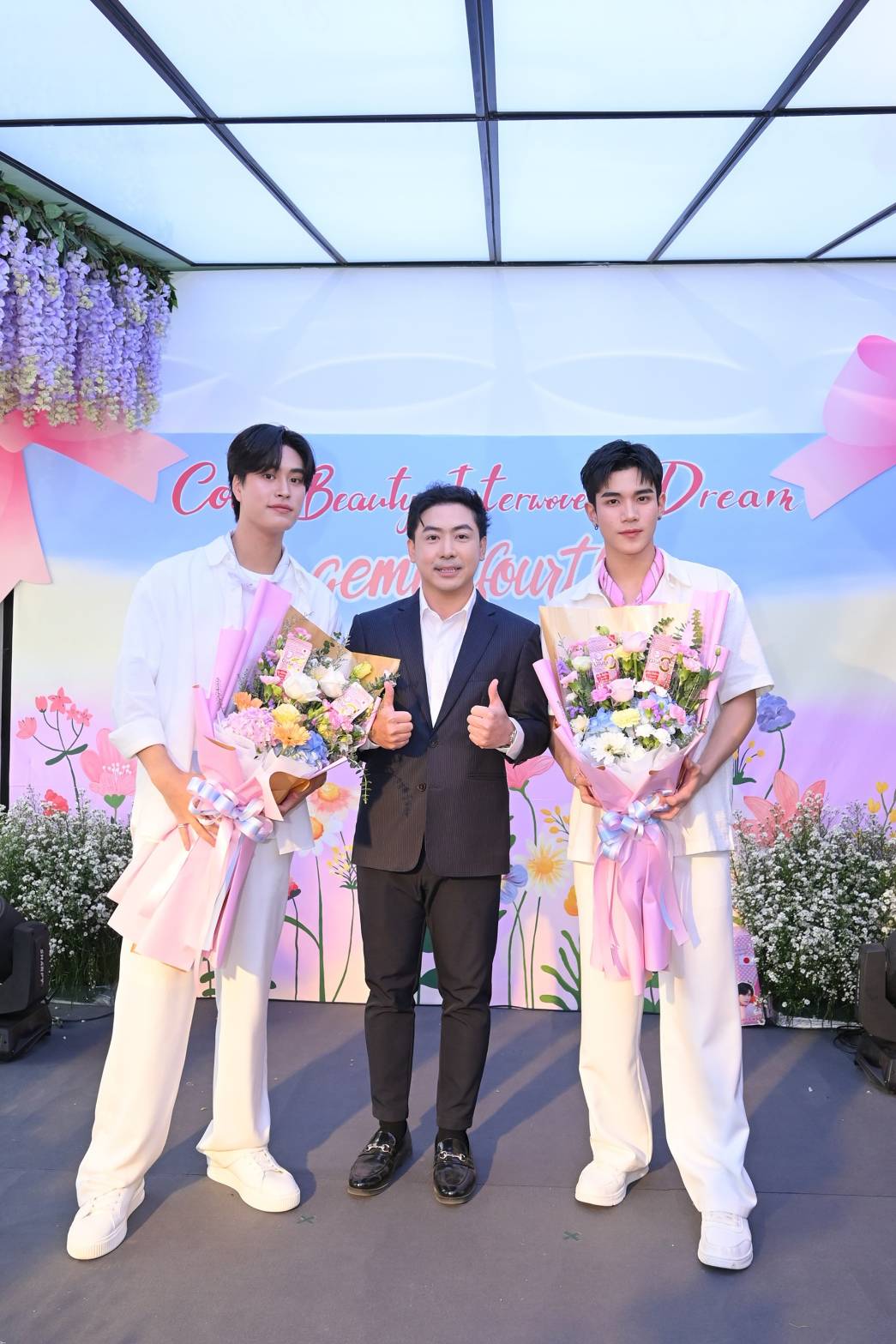 โฟร์ท กล่าวเสริมอีกว่า เราเองก็อยากให้ทุก ๆ คนมีผิวที่ดีไปพร้อม ๆ กันครับ อยากให้จัดกิจกรรมดี ๆ แบบนี้อีก ผมกับเจมีไนน์ต้องขอบคุณทาง Colly Collagen ด้วยที่เลือกเราเป็นพรีเซนเตอร์ แล้วยังทำให้ได้เจอกับแฟนคลับทุกคนด้วย อย่างกิจกรรมต้นไม้คอลลี่ ก็ทำให้ผมกับเจมีไนน์ได้พลังบวกดี ๆ และรับรู้ถึงความรู้สึกที่แฟนคลับมีต่อเราสองคน ผมก็อยากจะบอกว่าเราเองก็ต้องขอบคุณแฟนคลับเช่นเดียวกัน ไม่ใช่แค่คุณที่มีความสุขเท่านั้น แต่เราเองก็มีความสุขเหมือนกัน และขอบคุณเซอร์ไพรส์วันเกิดของผมที่ทาง Colly Collagen และแฟนคลับทำให้ด้วยครับ ก็หวังว่าเราสองคนจะได้เจอแฟนคลับอีกในโอกาสต่อ ๆ ไป